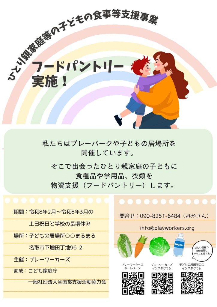 そこで出会ったひとり親の家庭の子どもに、食糧品や学用品、衣類を物資支援(フードパントリー)します🍙