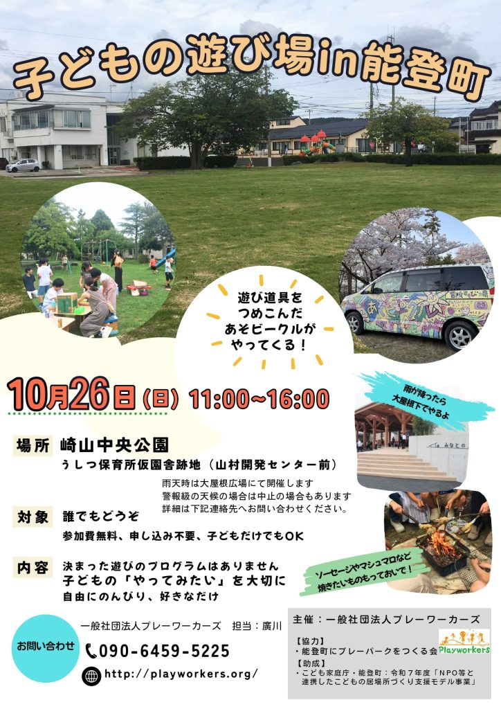 • 2025年10月21日プレーパーク情報【石川県】こどもの遊び場in能登町(10/26)