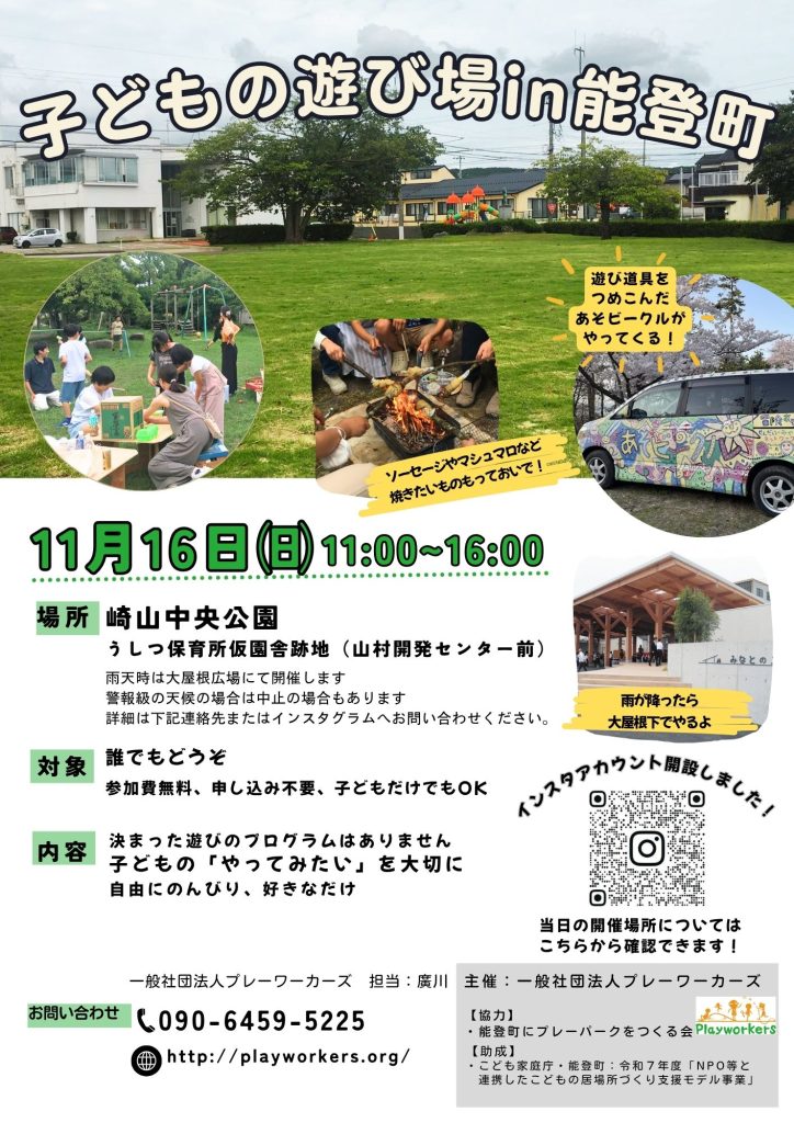 • 2025年11月5日プレーパーク情報【石川県】こどもの遊び場in能登町(11/16)
