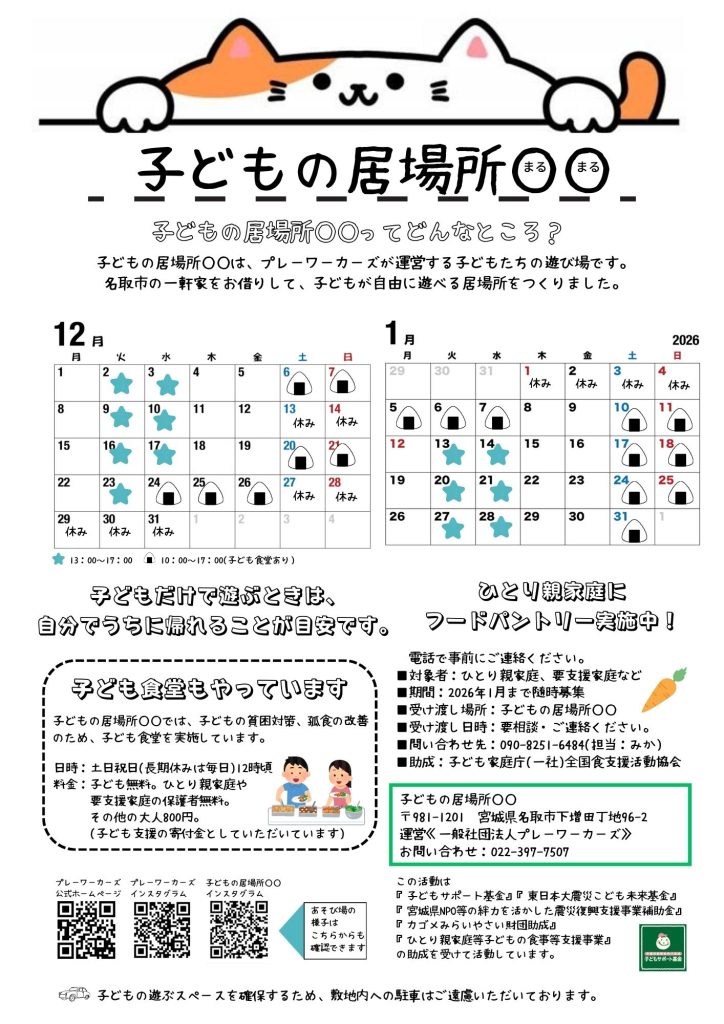 【名取市】子どもの居場所まるまる 12~1月開催日