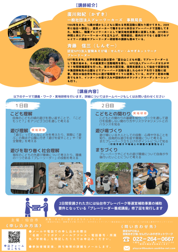 2日間を受講された方には、仙台市プレーパーク等運営補助事業の補助要件となる