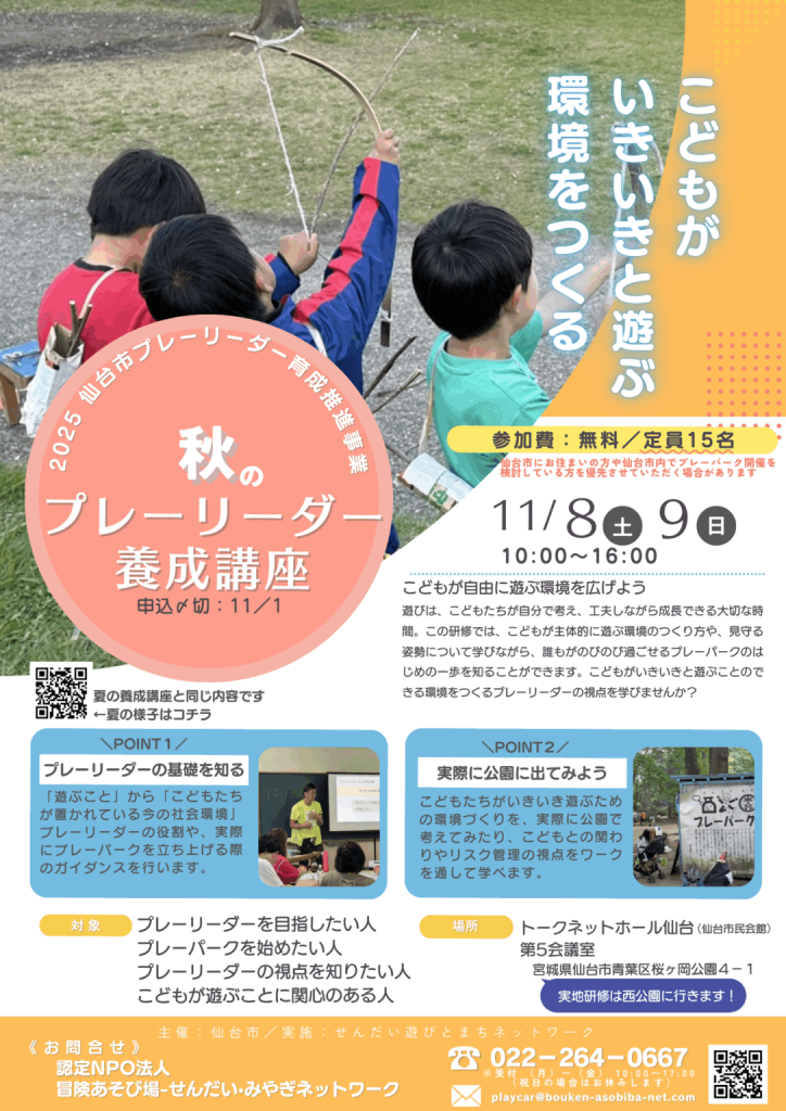【仙台市】秋のプレーリーダー養成講座 2025年11月8日、9日